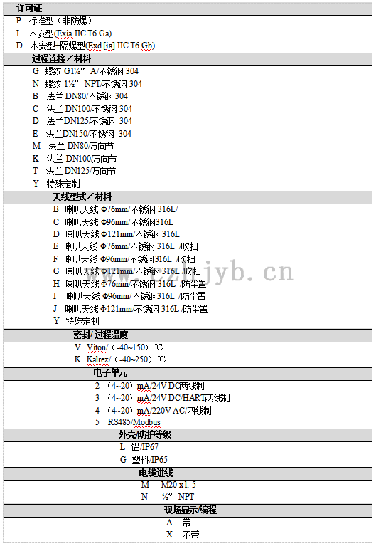 過程溫度(天線部分的溫度)                        (-40~250)℃