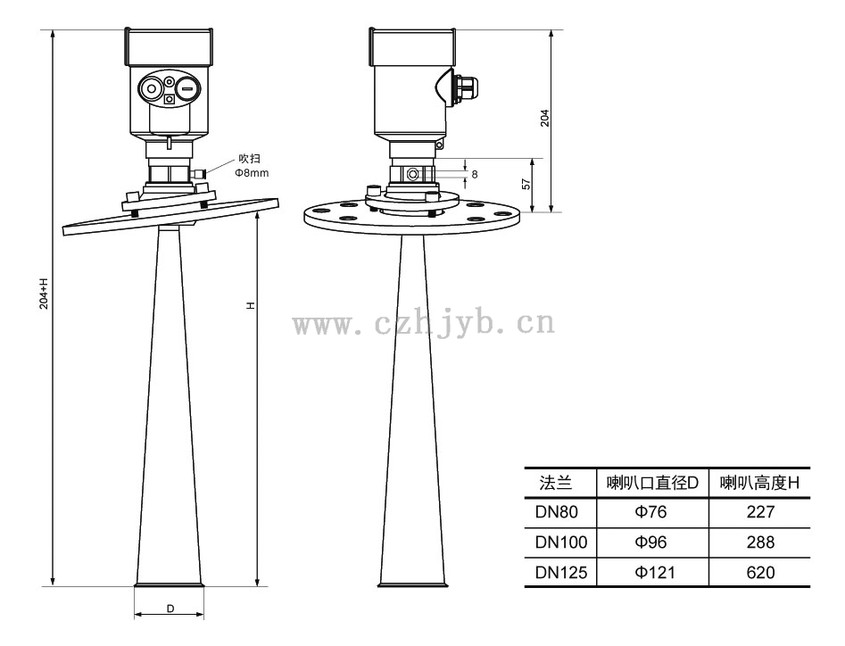 ● 天線尺寸小,便于安裝;非接觸雷達,無磨損,無污染。